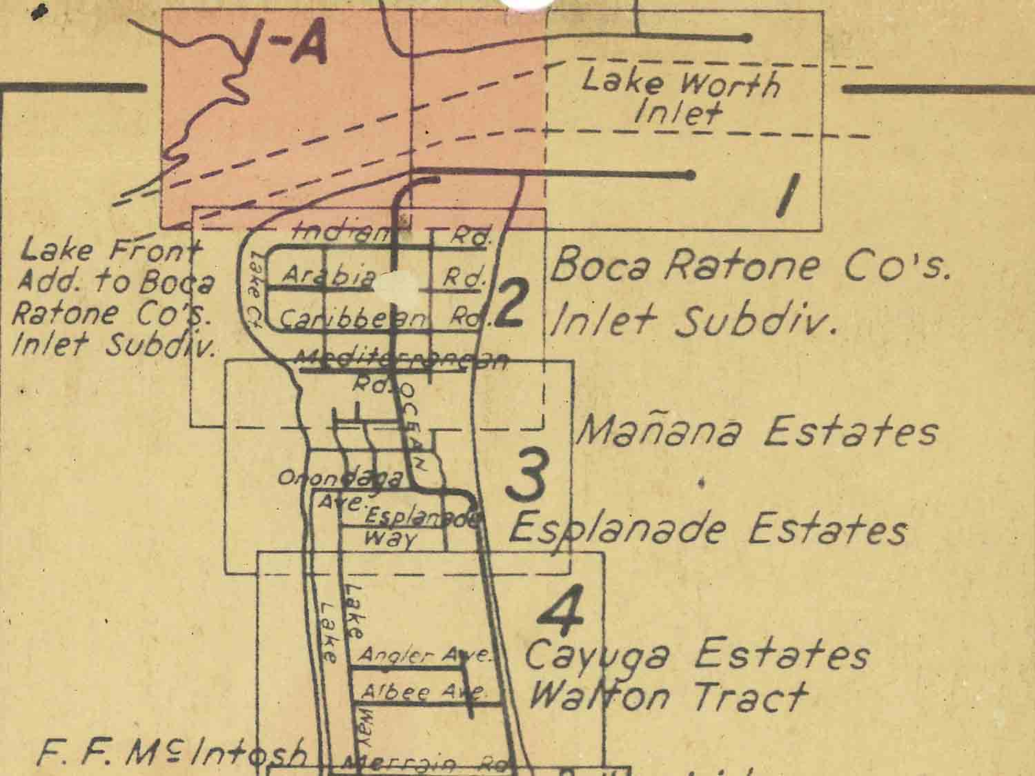 In the late 1930's, around the time of printing, Thomas Patterson went to court against the City of Palm Beach to remove Ocean Blvd's egress onto their property. They lost, appealed and lost again.