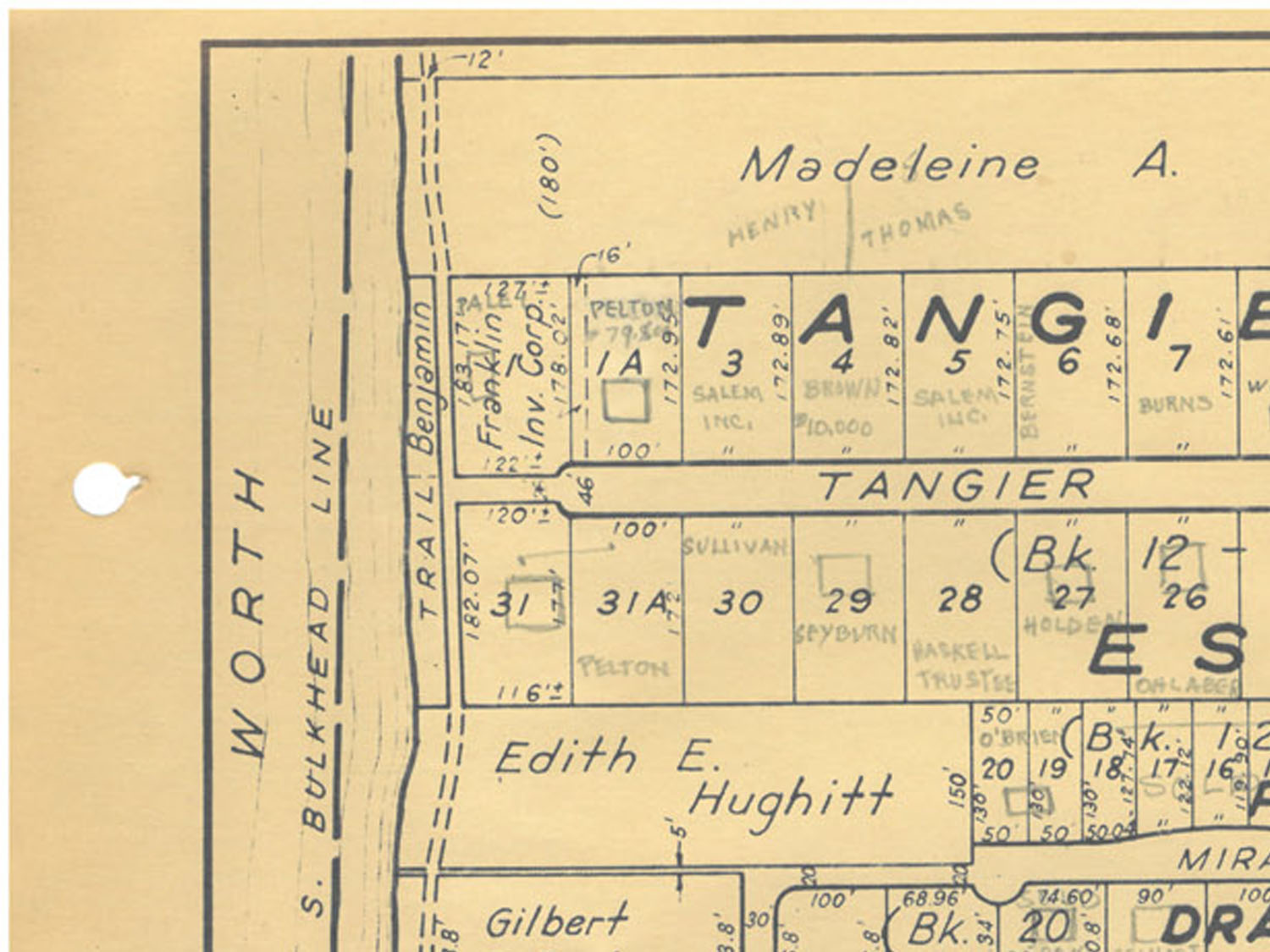 Developments include Tangier Estates, El Paraiso and Drake Park. Property owned by Charles and Gurnee Munn as well a three different Phipp's family members is noted by Brockway.