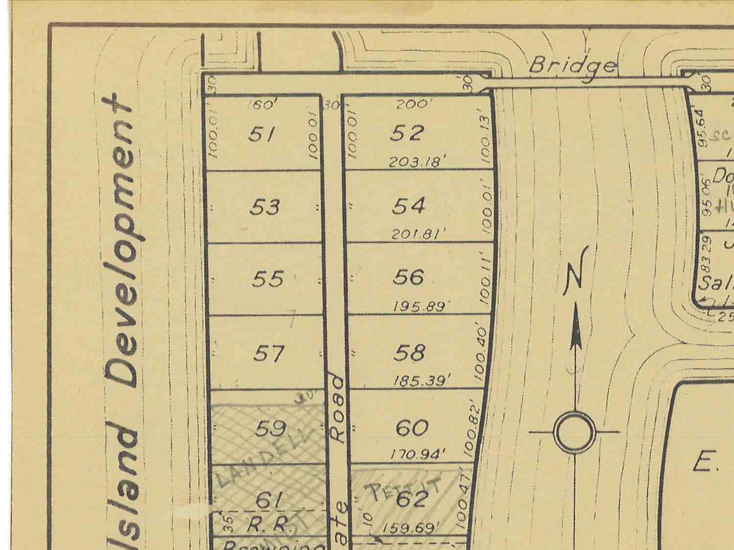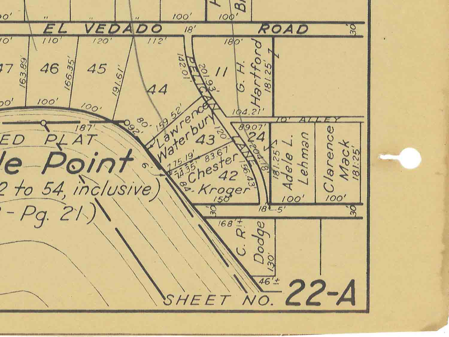 This sheet was updated with a pencil probably in 1947 or 1948. Property owner names, property prices and indications of whether there was a structure on the property were noted