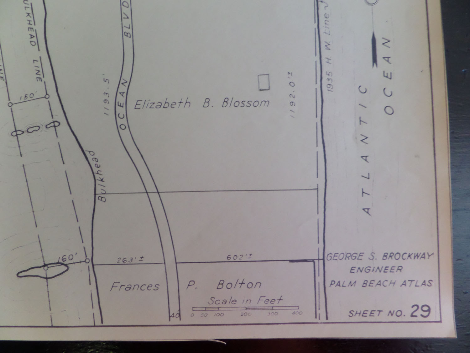 ingham-Blossom Figulus House once stood on the Elizabeth B Blossom Atlantic to Intracoastal parcel with nearly 1200 feet of oceanfront footage. Bordered on the north by her brother's Harry P. Bingham and on the south by sister Francis P. Bolton