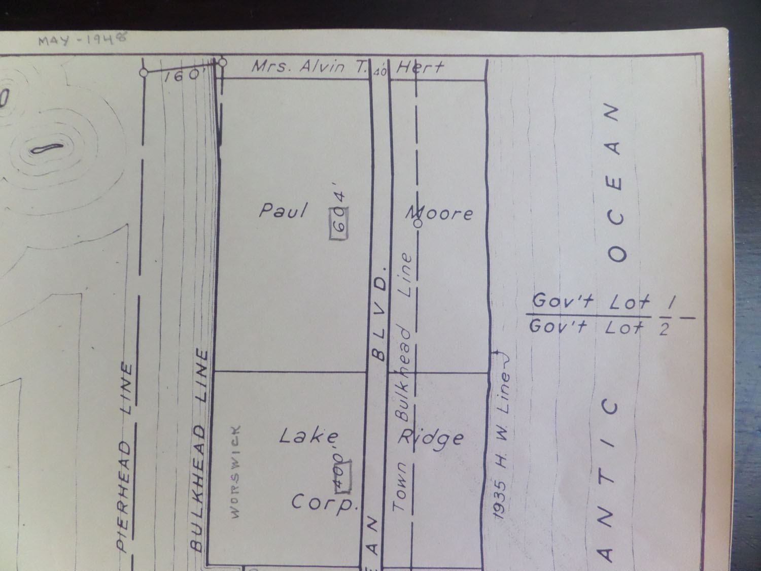 Many of these sheets were updated with a pencil probably in 1947 or 1948. Property owner names, property prices and indications of whether there was a structure on the property were noted