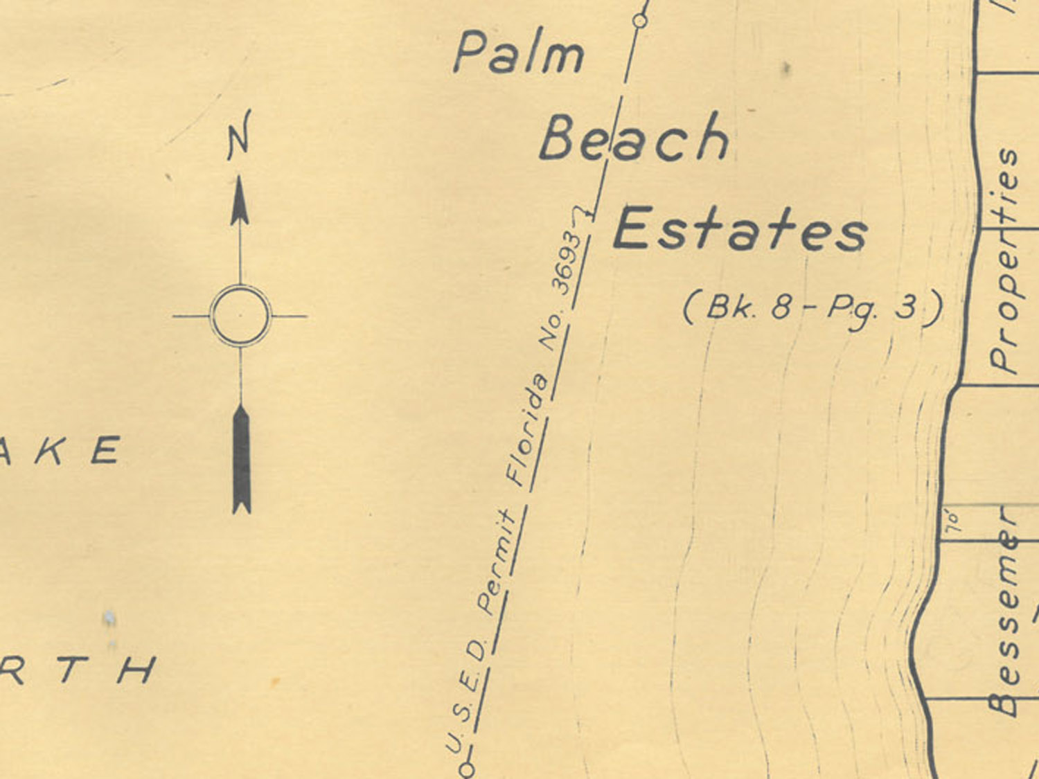 Just South of present day Sloans curve. Palm Beach Estates, Ridgemont and Bessemer Properties Incorporated