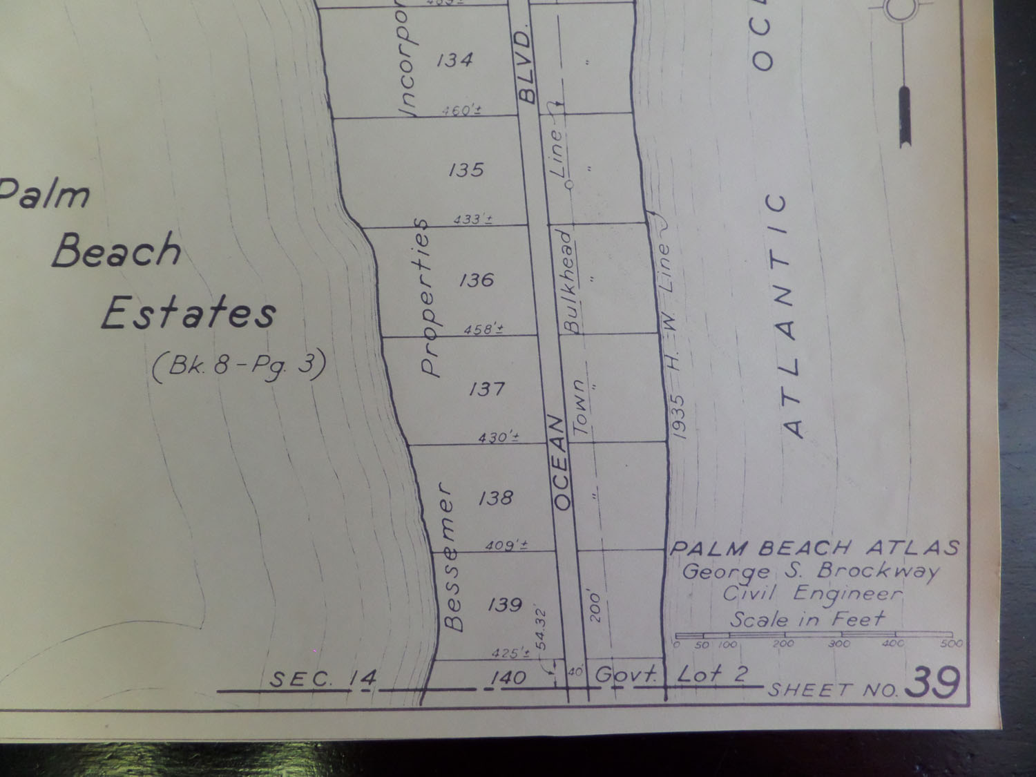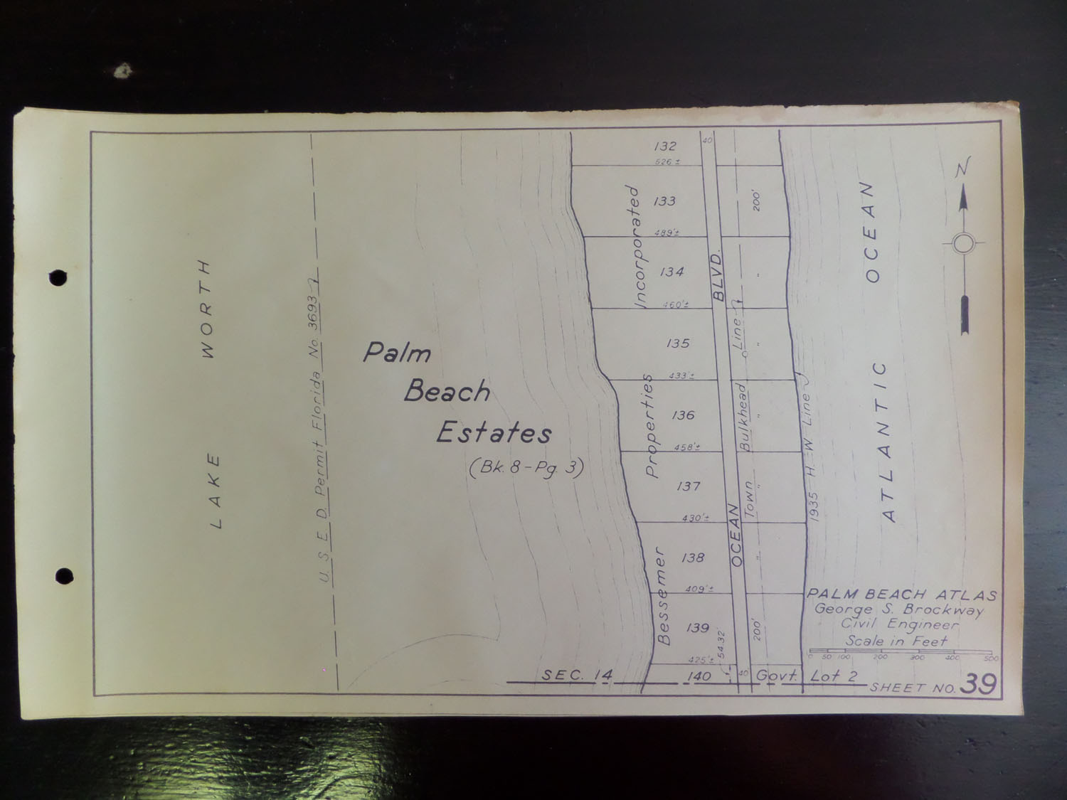 Many of these sheets were updated with a pencil probably in 1947 or 1948. Property owner names, property prices and indications of whether there was a structure on the property were noted. No pencil markings observed