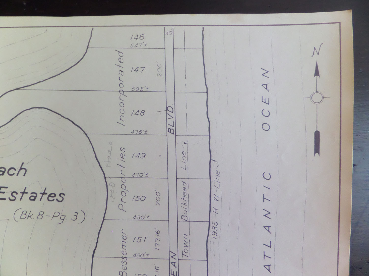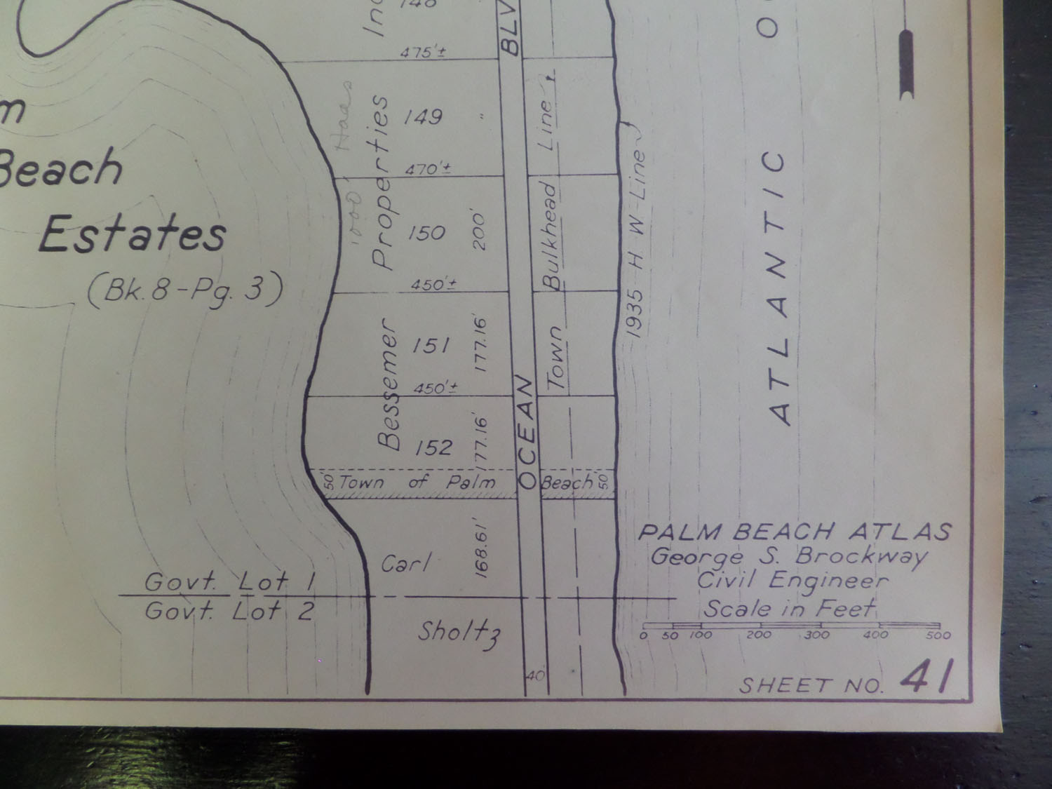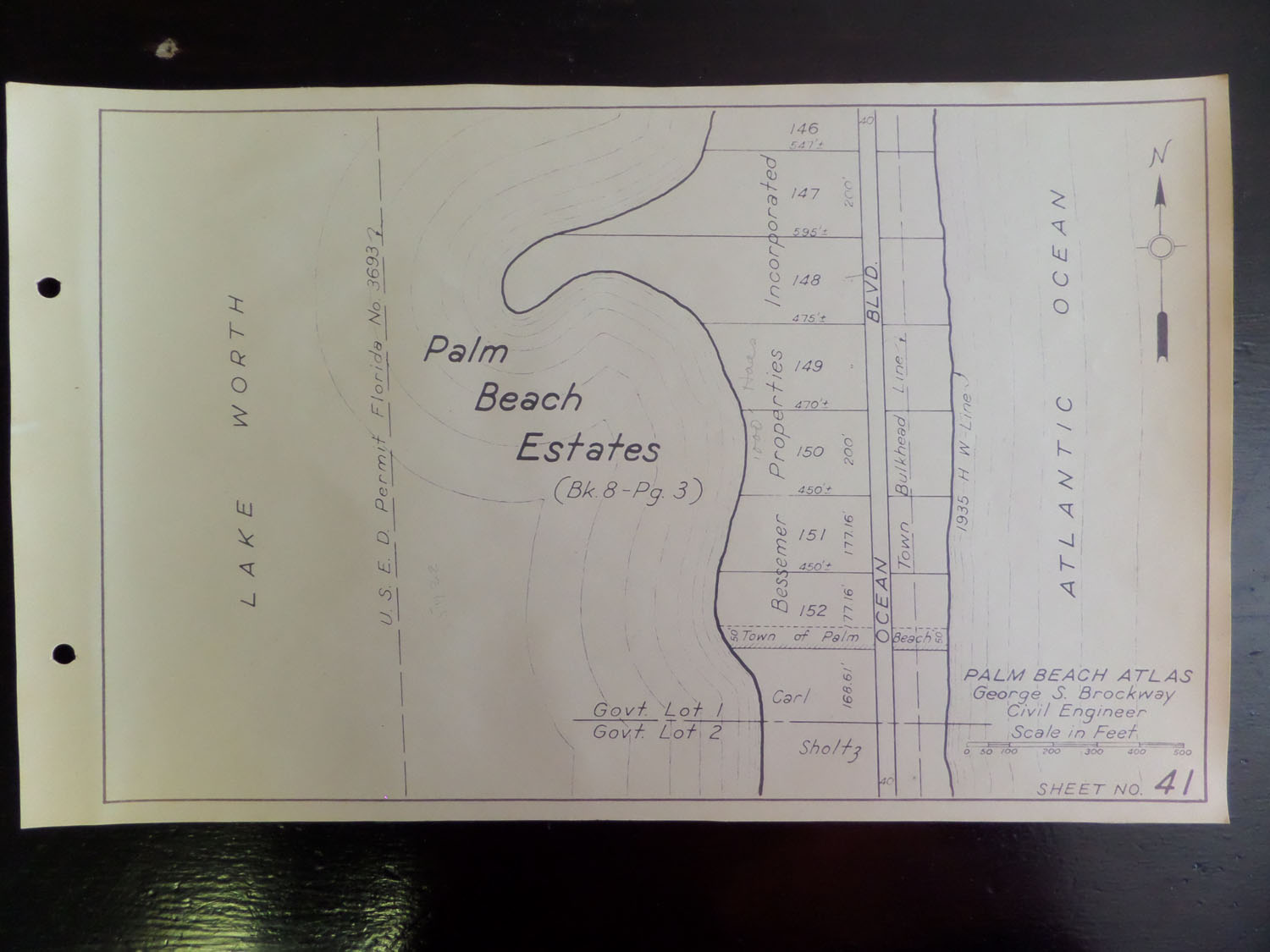 Many of these sheets were updated with a pencil probably in 1947 or 1948. Property owner names, property prices and indications of whether there was a structure on the property were noted