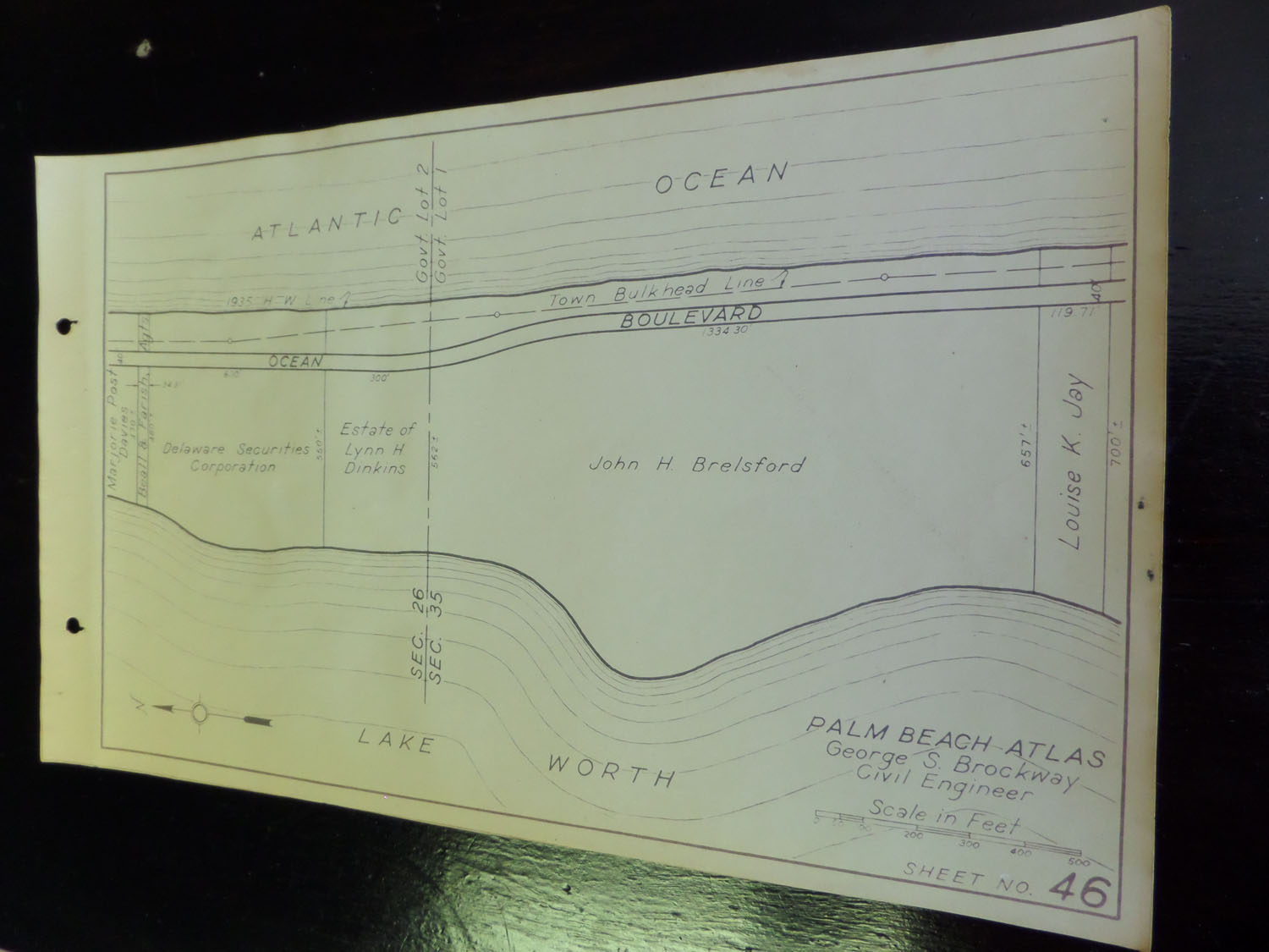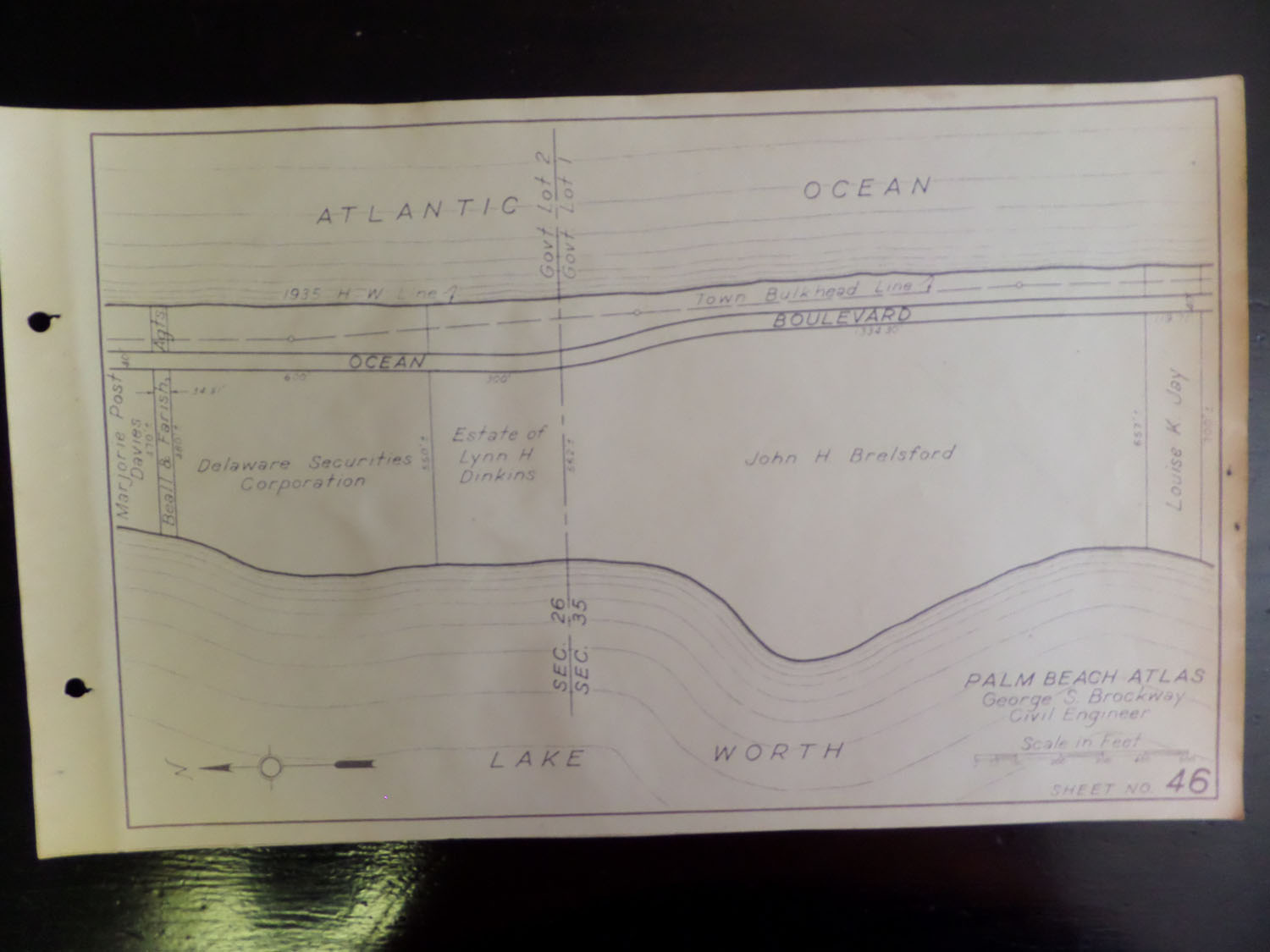 Many of these sheets were updated with a pencil probably in 1947 or 1948. Property owner names, property prices and indications of whether there was a structure on the property were noted. Clean sheet with no pencil markings observed