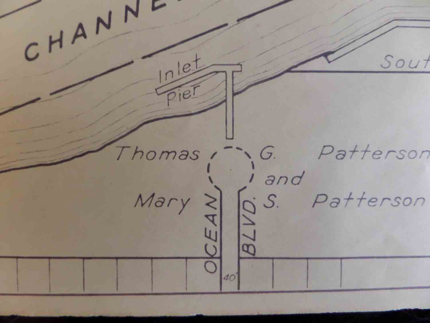 In the late 1930's, around the time of printing, Thomas Patterson went to court against the City of Palm Beach to remove Ocean Blvd's egress onto their property. They lost, appealed and lost again.