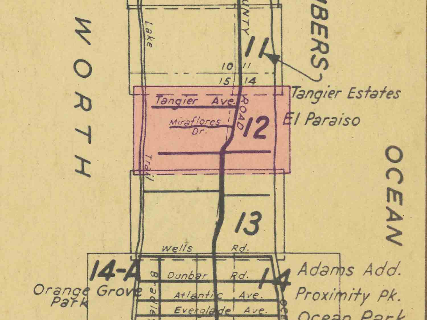 Tangier Ave. and Miraflores Drive are the only two East - West Roads on this sheet - Lake Worth to the Atlantic Ocean.