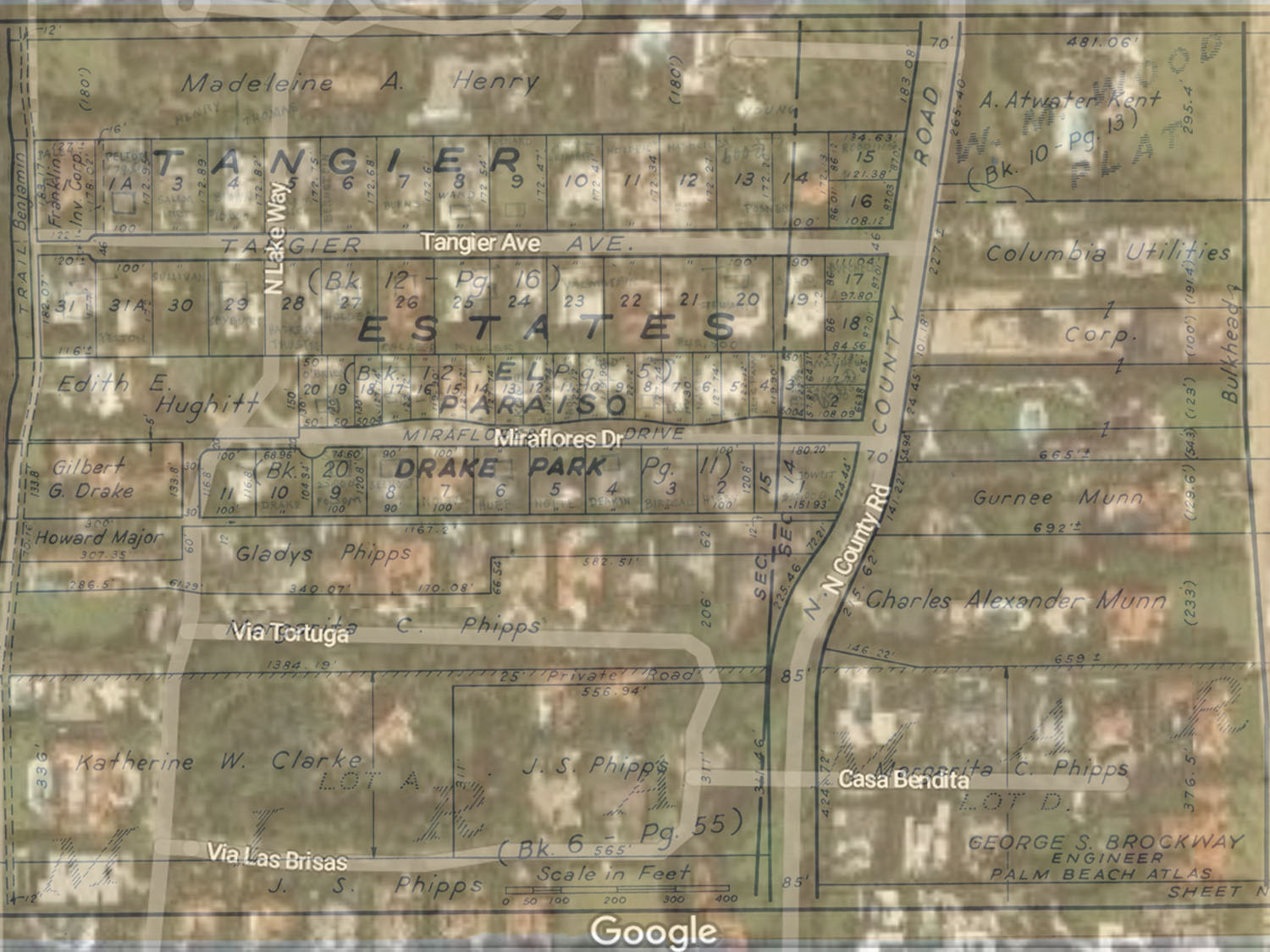 Developments include Tangier Estates, El Paraiso and Drake Park. Property owned by Charles and Gurnee Munn as well a three different Phipp's family members is noted by Brockway.
