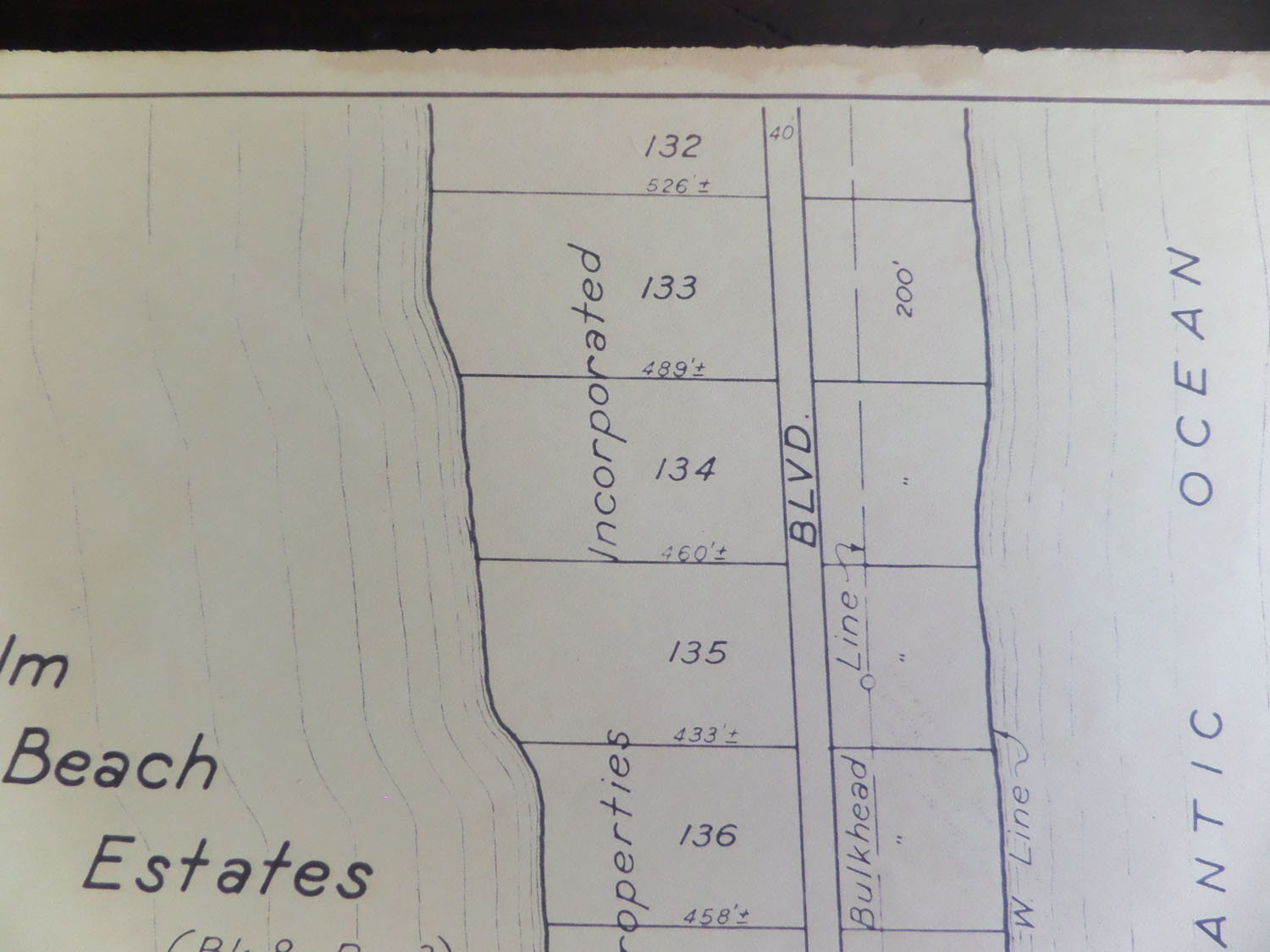 Many of these sheets were updated with a pencil probably in 1947 or 1948. Property owner names, property prices and indications of whether there was a structure on the property were noted. No pencil markings observed