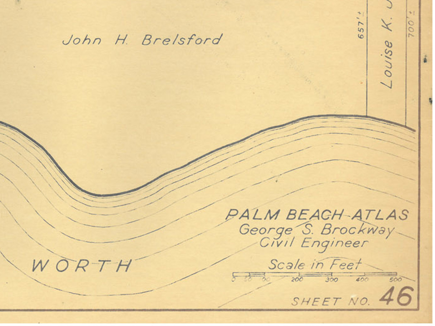 Many of these sheets were updated with a pencil probably in 1947 or 1948. Property owner names, property prices and indications of whether there was a structure on the property were noted. Clean sheet with no pencil markings observed